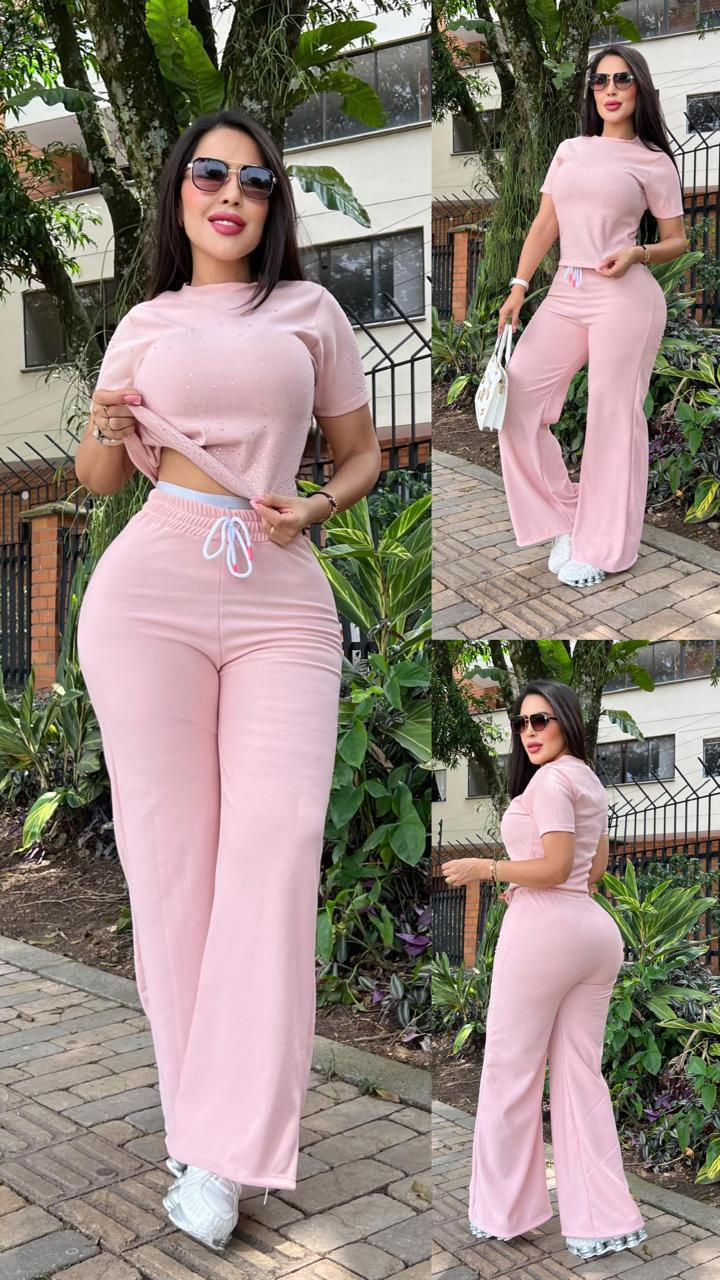 C🇨🇴✅i30/nov. Conjunto T=Ú full piedras en rib pitillo #MO3098-G099
